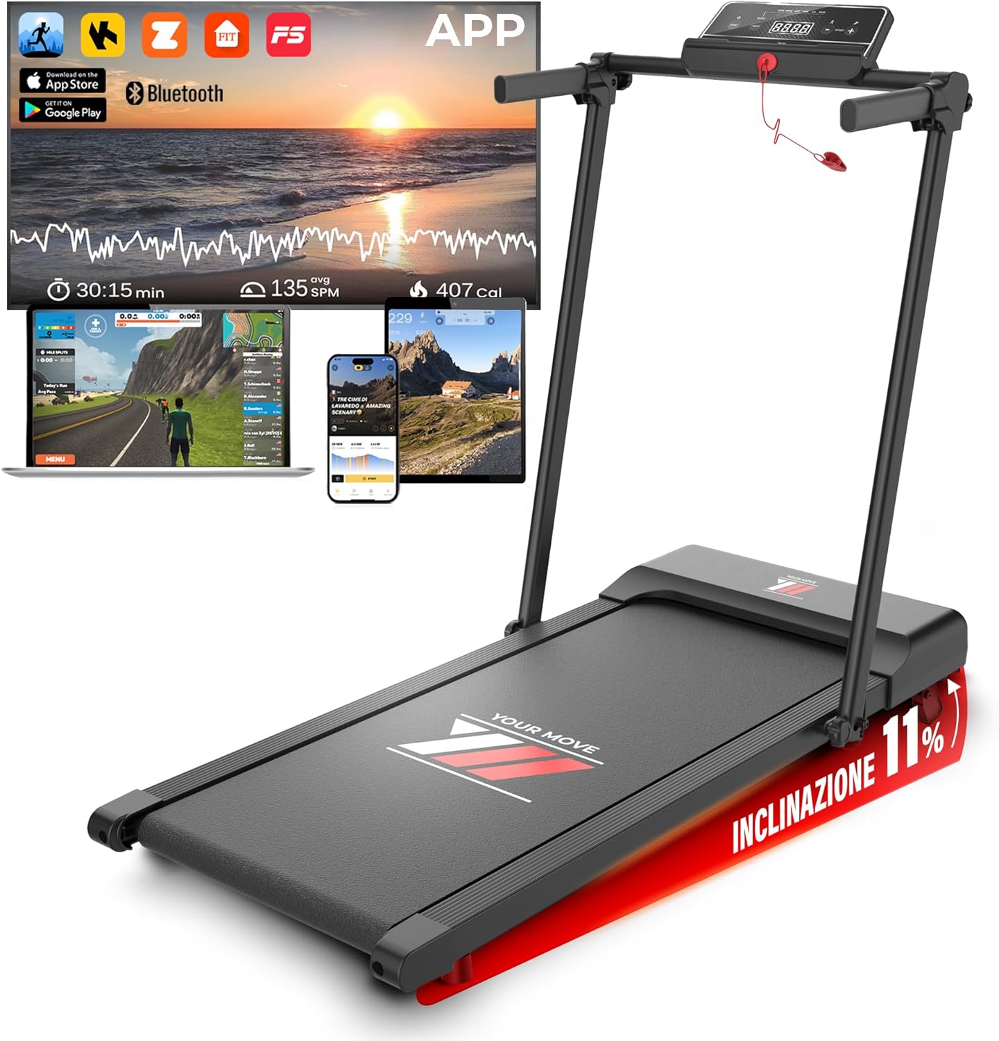 Scopri YM Tapis Roulant NEXT 1000 Your Move: allenati a casa con potenza, inclinazione e design salvaspazio pieghevole fino a 12 km/h con assistenza italiana